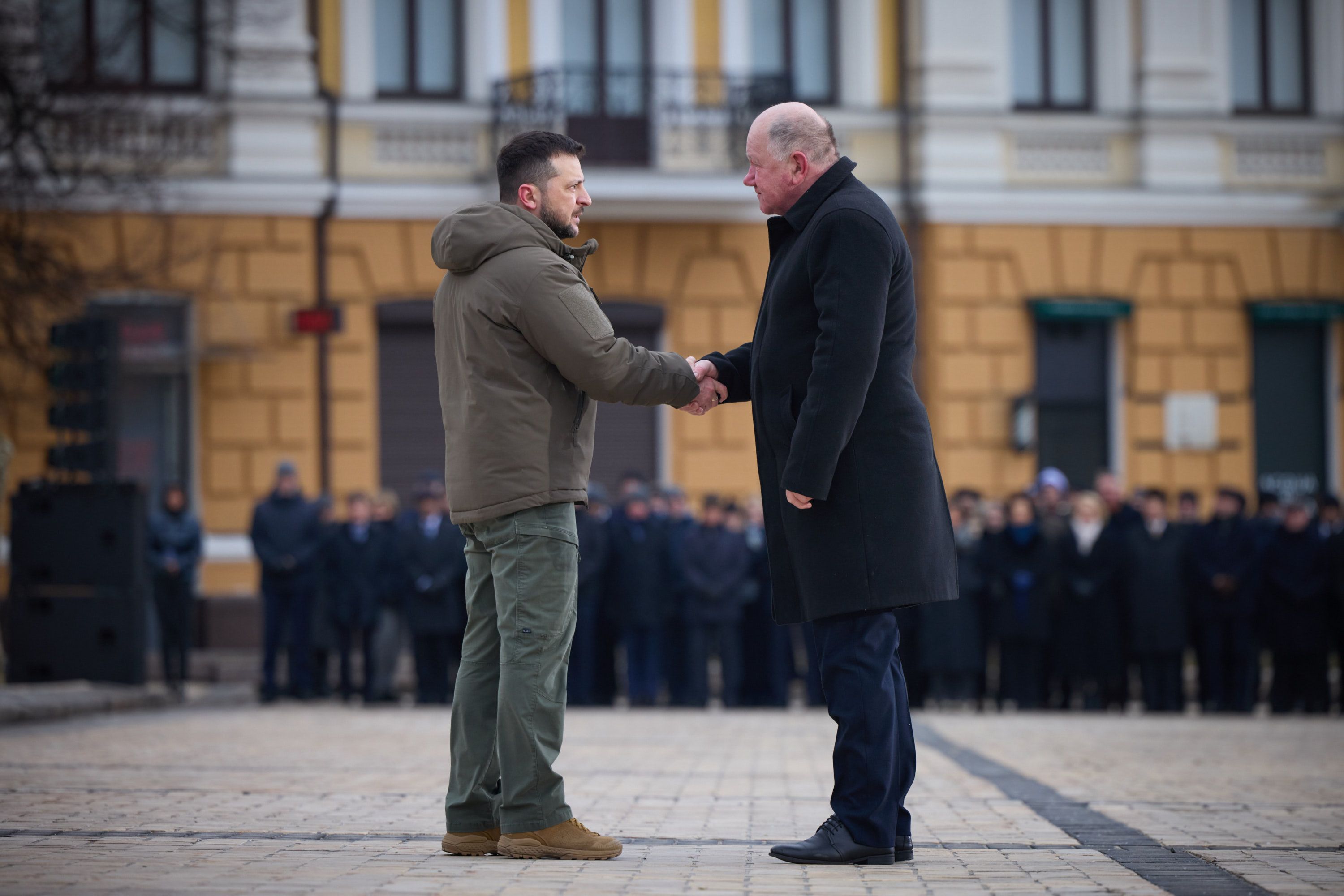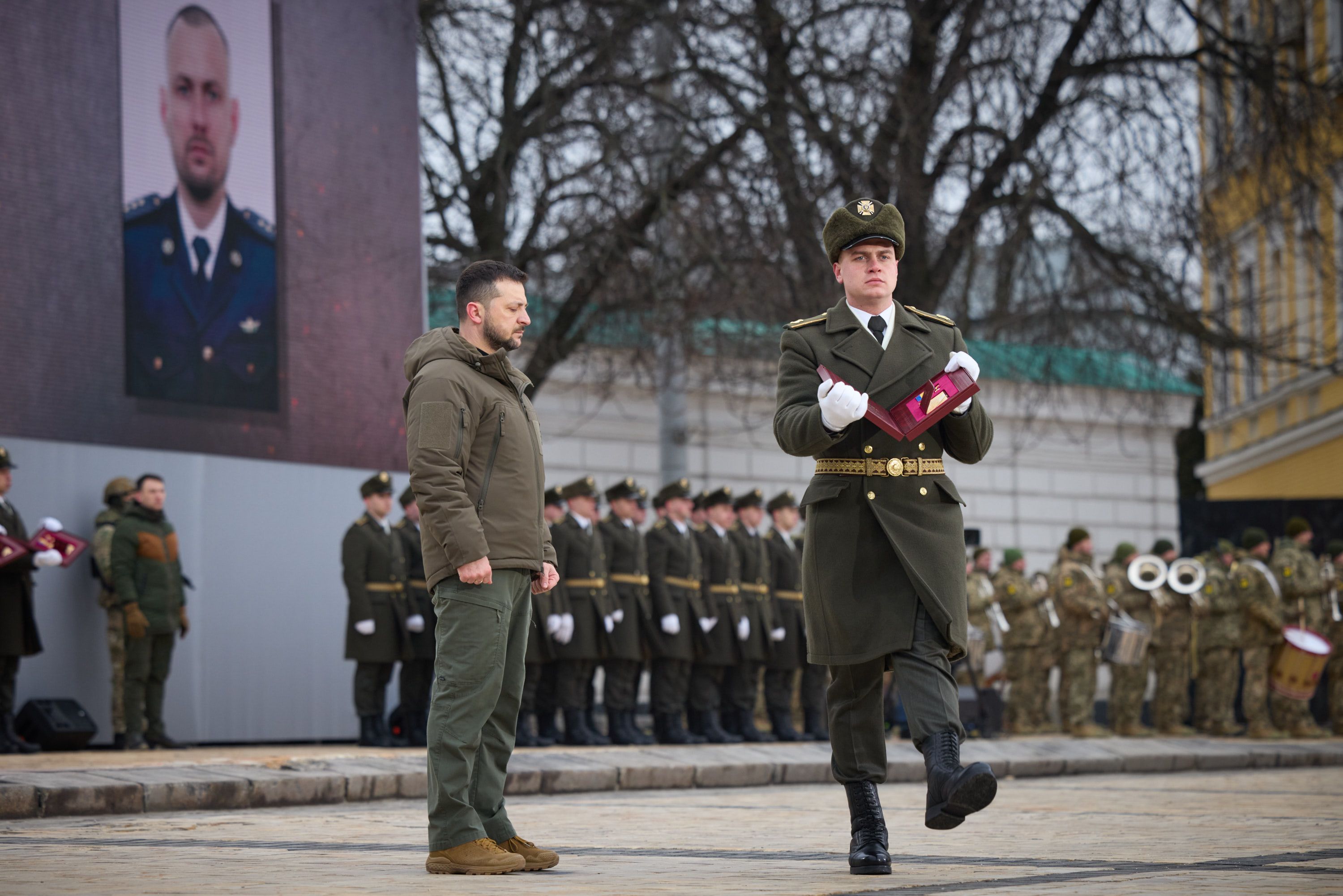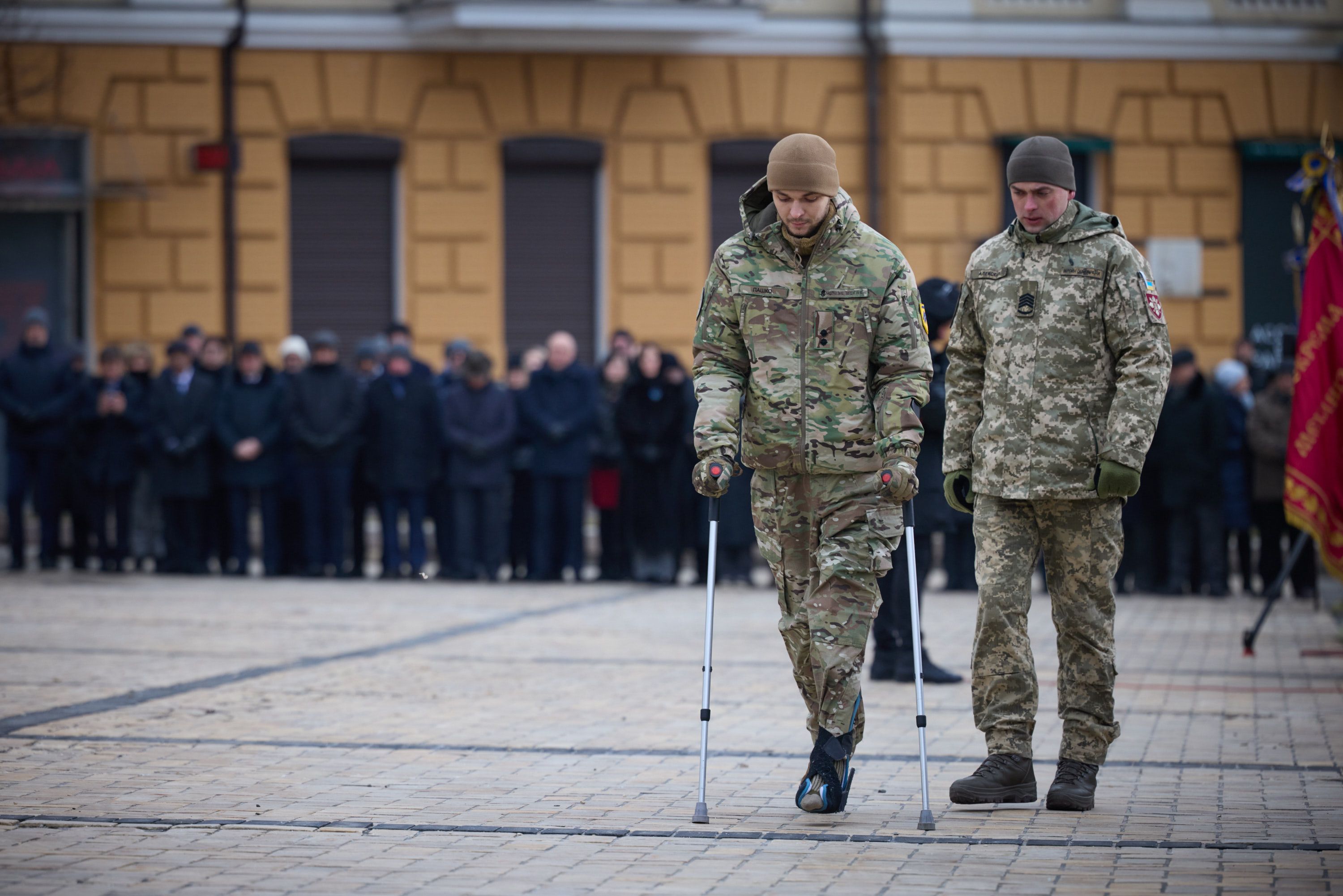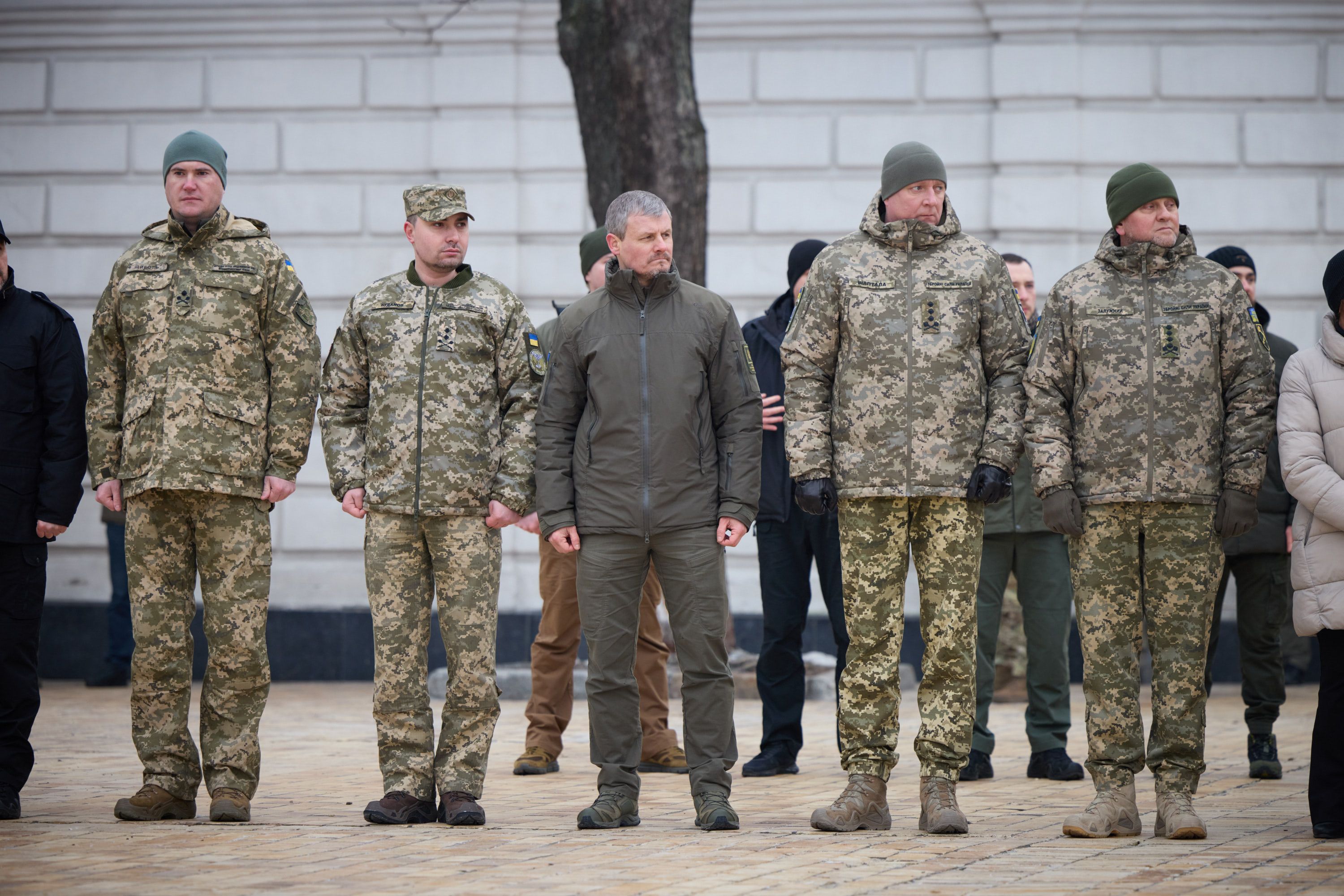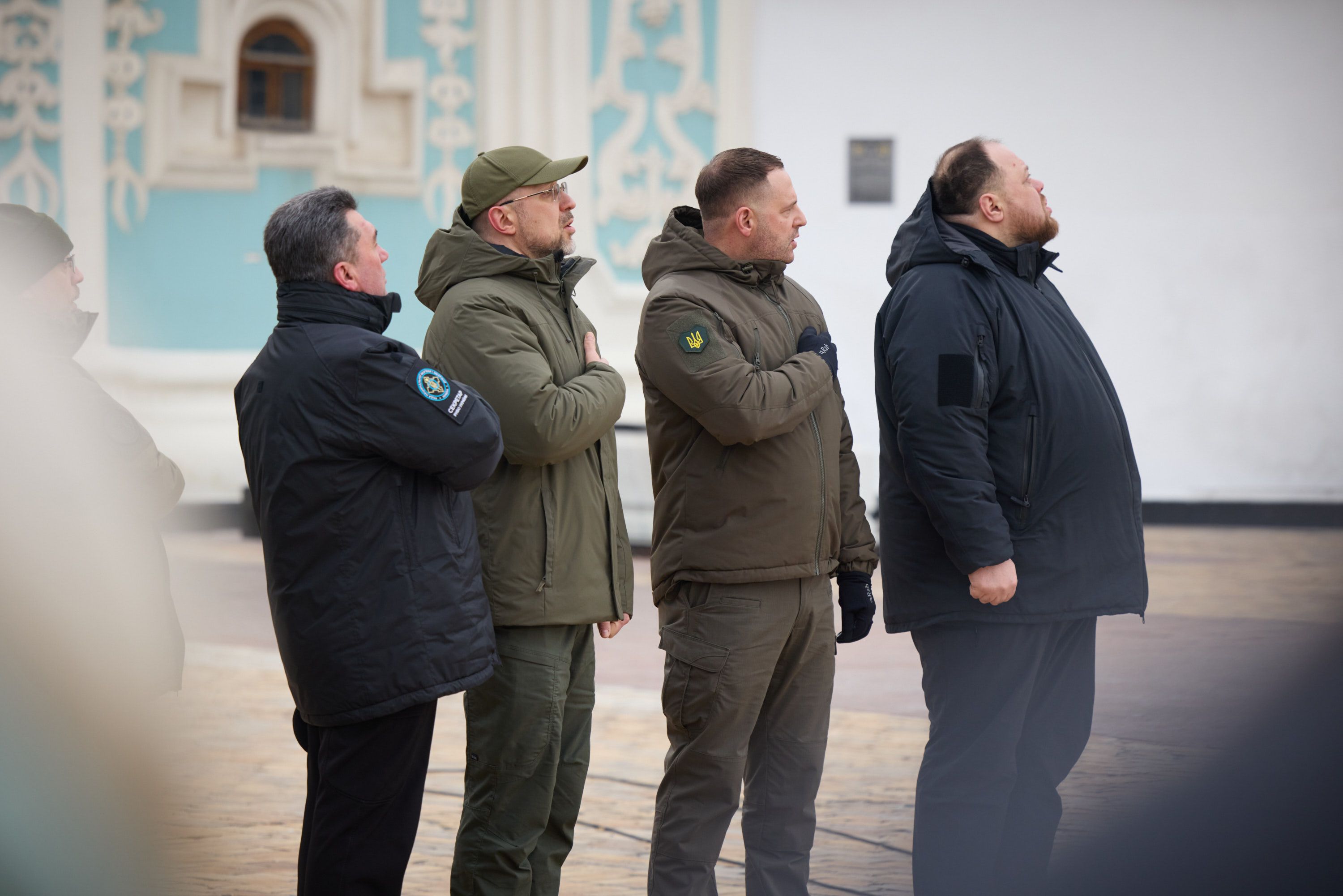 До пам'ятних заходів на Софійській площі долучились також Головнокомандувач ЗСУ Валерій Залужний, начальник ГУР Кирило Буданов, очільник СБУ Василь Малюк, міністр оборони Олексій Резніков та інші високопосадовці.