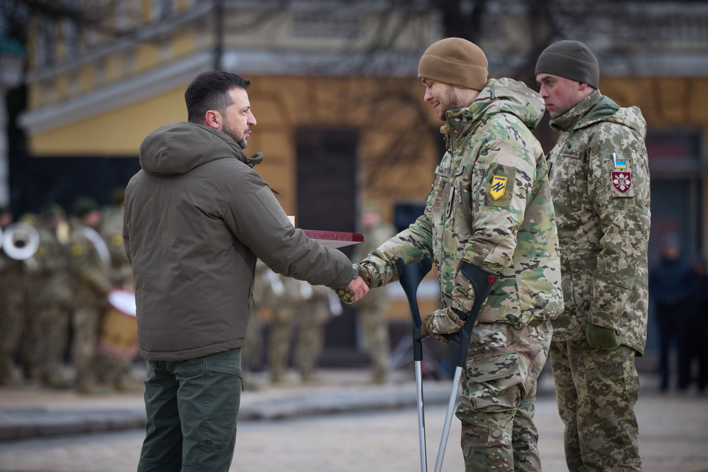 Поранений боєць йде отримувати нагороду від Зеленського / Фото пресслужба ОП