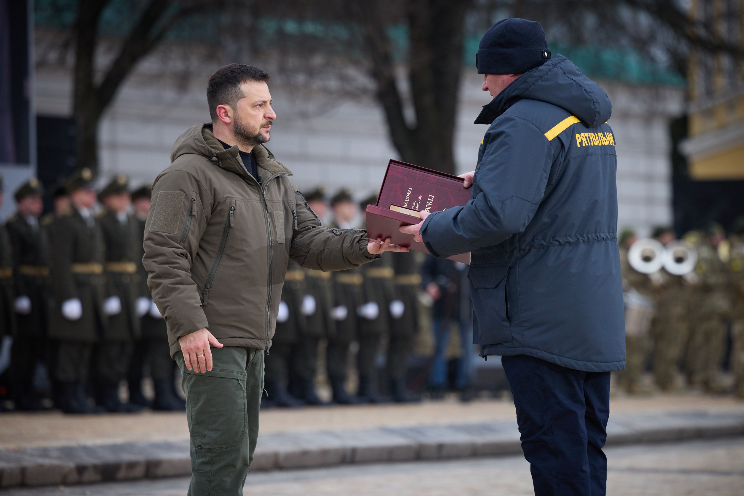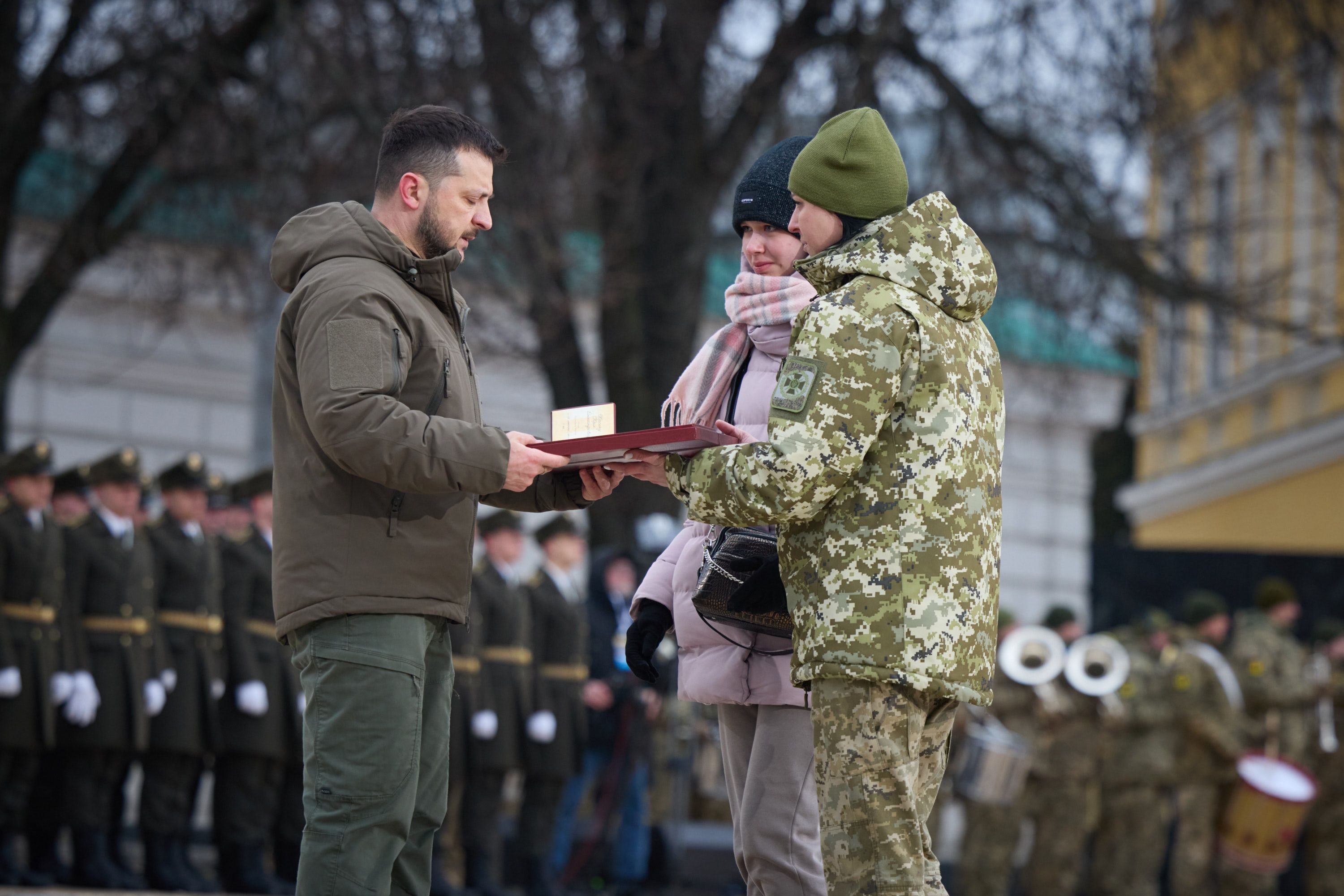 Глава держави нагородив воїнів та рятувальників, які проявили мужність та героїзм, захищаючи незалежність України. Також Зеленський вручив посмертні нагороди рідним загиблих бійців.