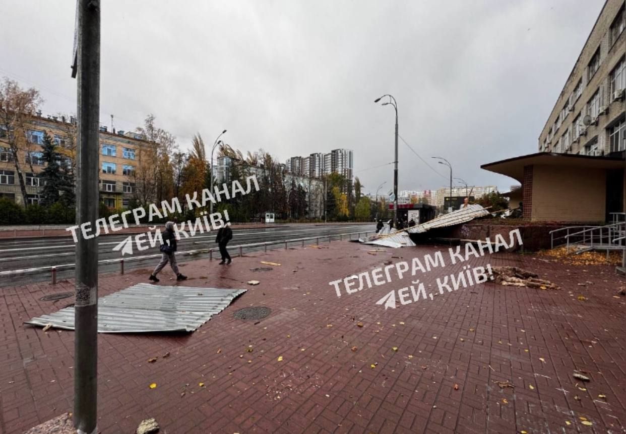 Біля метро Васильківська на будівлі зірвало дах: дивіться відео