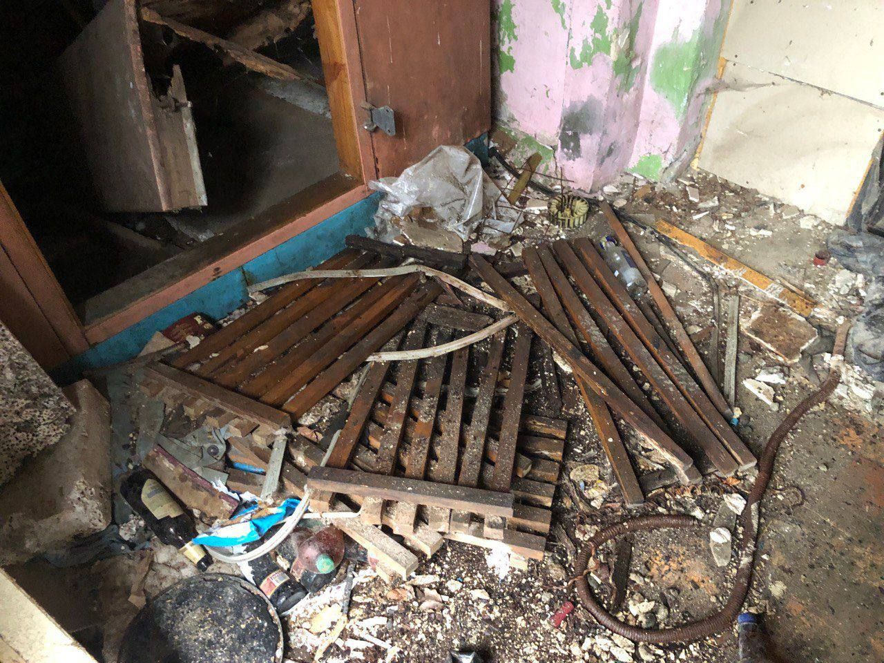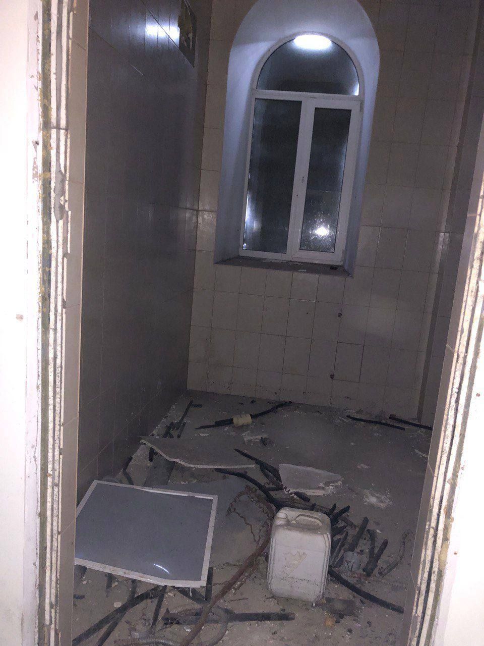 Без опису Міністерства культури можна б було подумати, що це фотографії не то закинутих приміщень, не то будівлі, у яку потрапила російська ракета. На них видно й понівечені стіни, і зруйновану стелю, і гори будівельного сміття, серед якого знайшлося місце пляшкам з-під алкоголю.