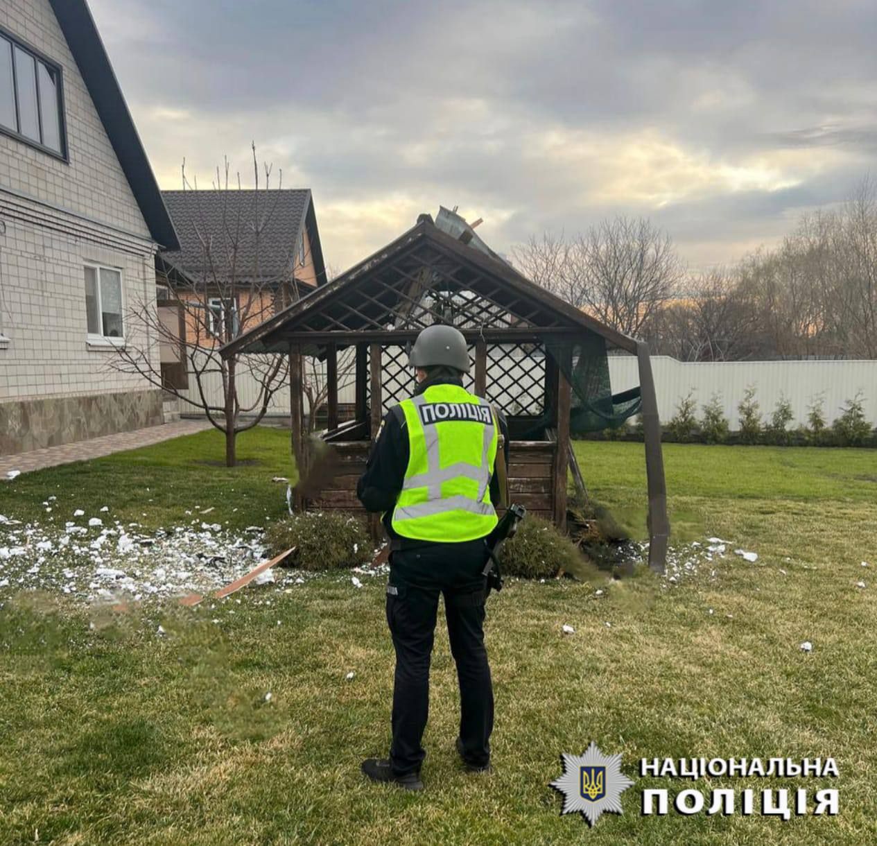 На місці обстрілу працюють групи реагування патрульної поліції, слідчо-оперативні групи та вибухотехніки поліції Київської області.