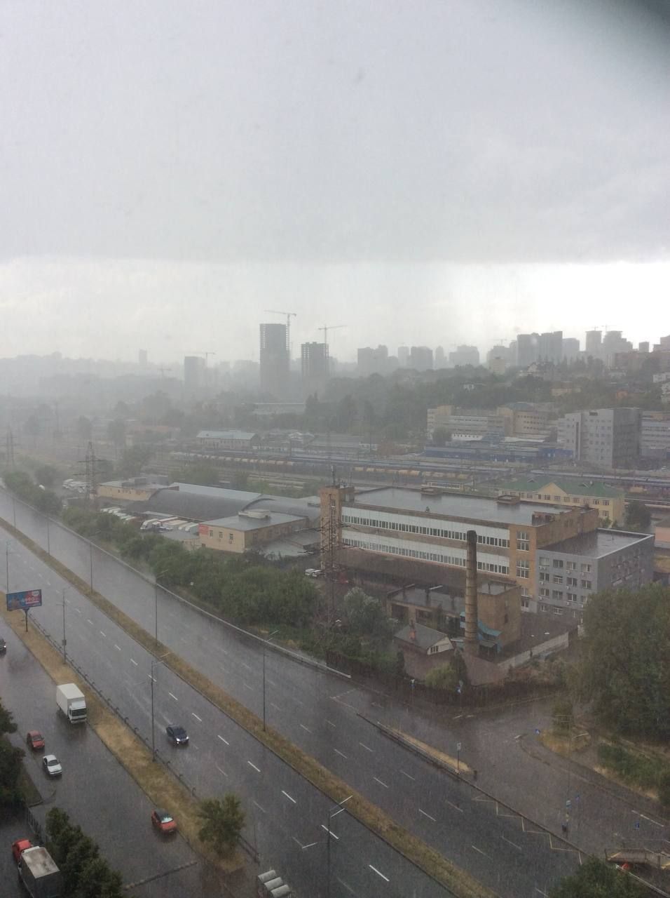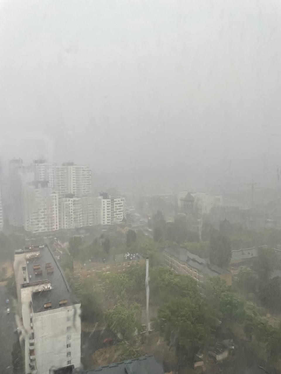 Згодом журналісти 24 Каналу розповіли, що Київ накрила потужна злива. Ба більше, подекуди навіть падав град.