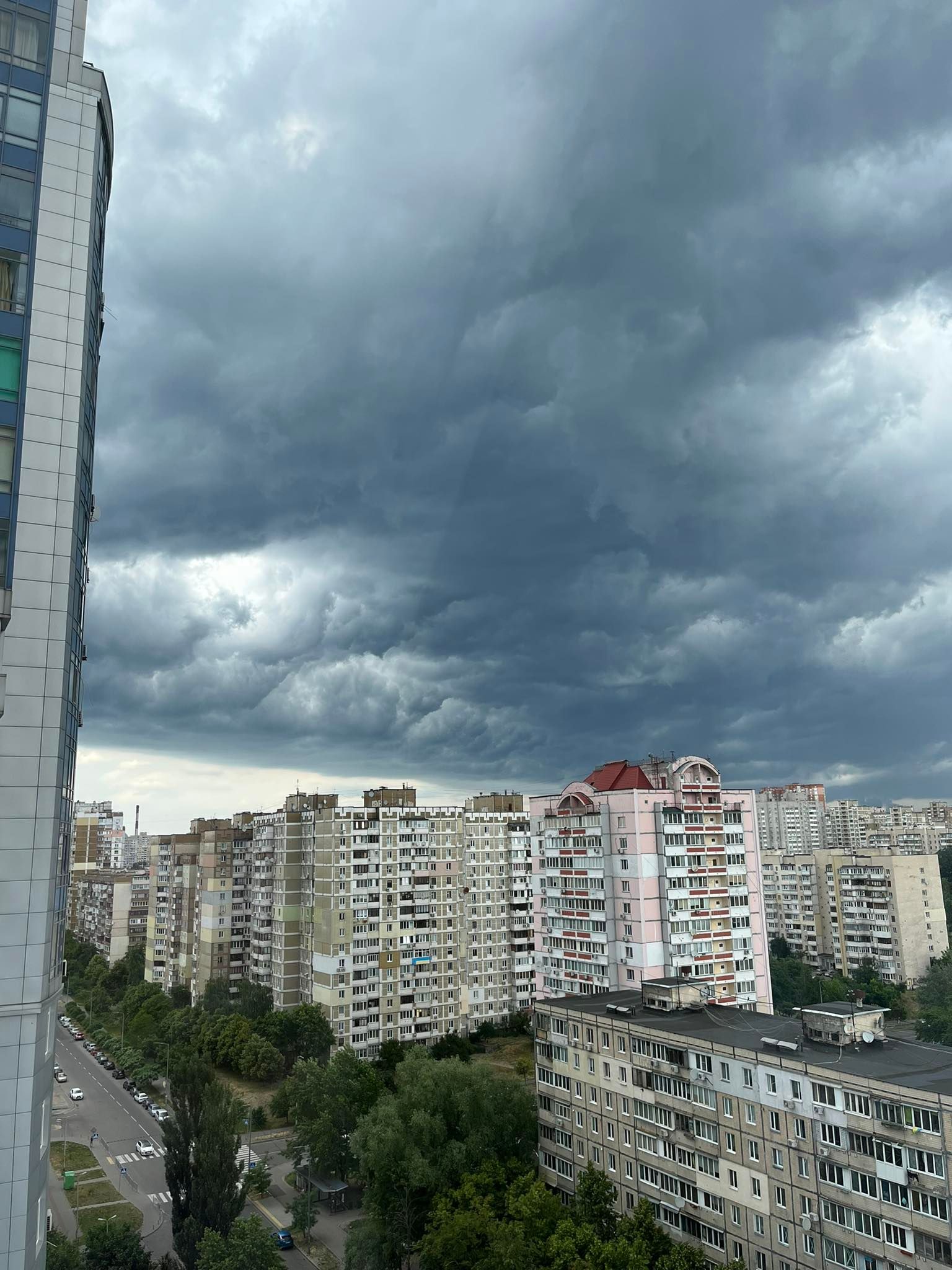 Згодом негода таки накрила столицю. Зокрема, орієнтовно о 15:25 10 червня у Київській області вже було чутно грім.
