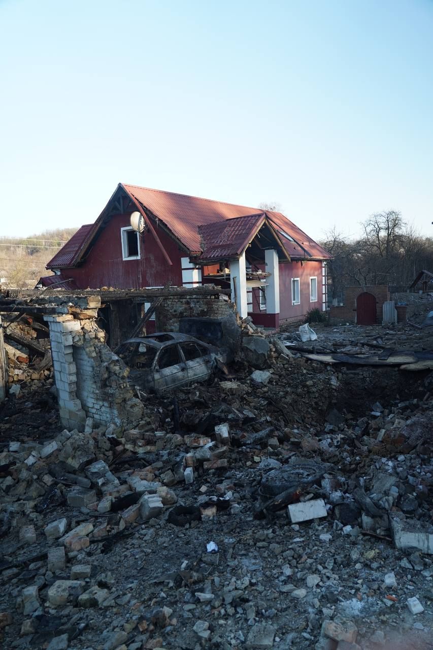 В оселі пошкоджені вікна, двері та дах. Повністю згоріла літня кухня, гараж та автівка. Вибуховою хвилею також пошкодило будинок навпроти. Про це розповів очільник ОВА Київщини Олексій Кулеба, він також зауважив, що найбільше його вразив дух людей.