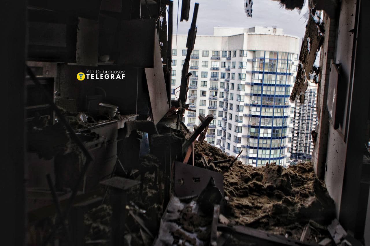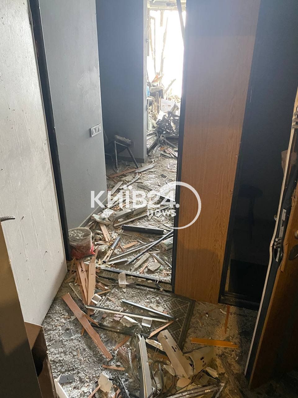 Наслідки влучання уламків "Шахеда" в будинок в Дарницькому районі / Фото Ян Доброносов і "Київ24"