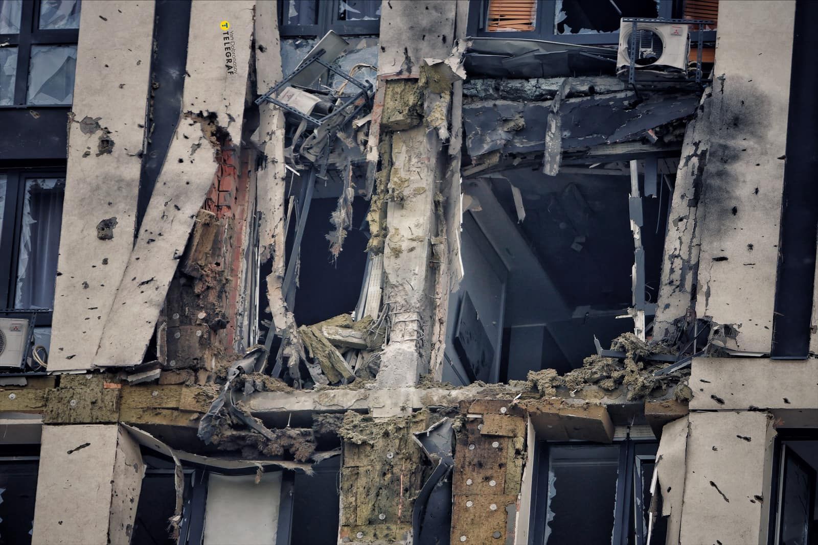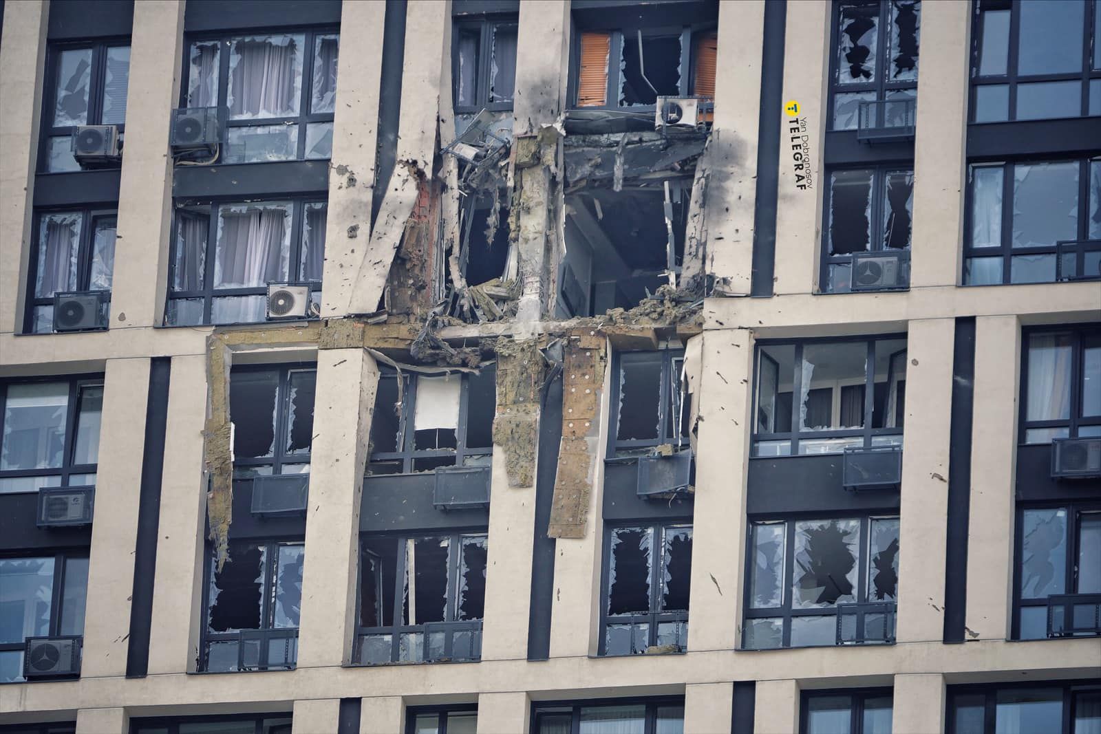За іншою адресою у 25-поверховому житловому будинку на рівні 25 поверху сталося пошкодження фасаду будівлі. Унаслідок цього постраждали дві людини, яких з осколковими пораненнями було госпіталізовано до медичного закладу.