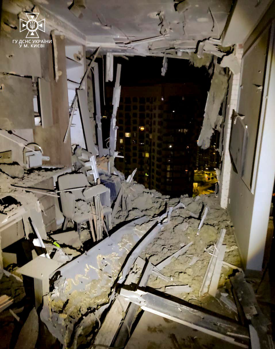 За попередньо інформацією від ДСНС, падіння уламків зафіксовано у 4 районах столиці. За однією адресою рятувальники ліквідовували пожежу на балконі 5 поверху 16-поверхового житлового будинку.
