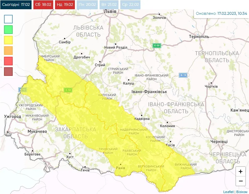 Синоптики також попередили про значну сніголавинну небезпеку на високогір'ї Закарпатської та Івано-Франківської областей. Така ситуація спостерігатиметься 18 – 19 лютого.