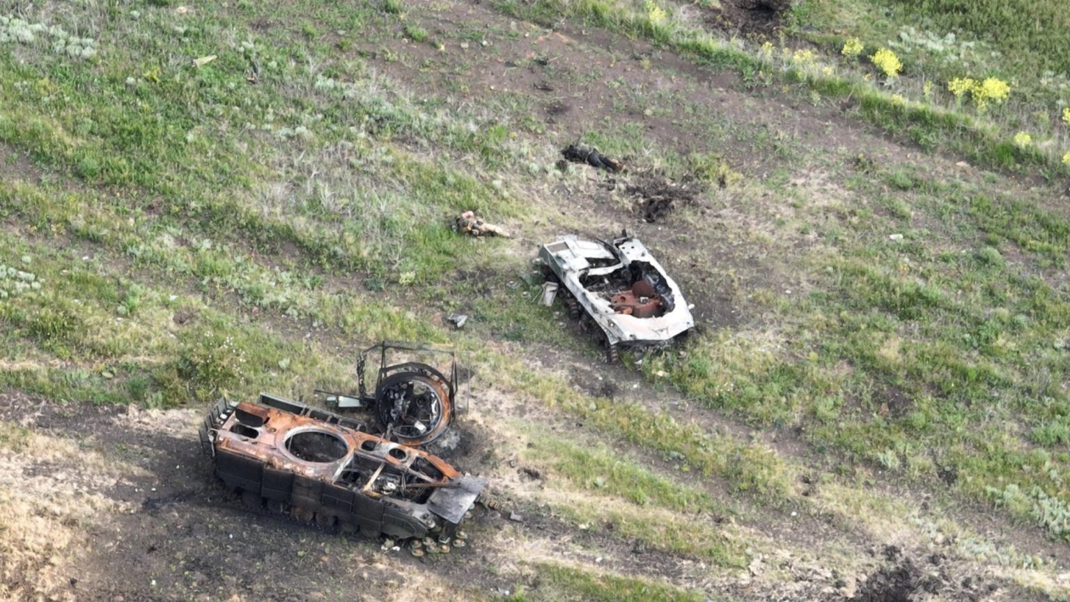 З розбитих бойових машин піхоти та танків росіян на підступах до села утворилося "кладовище" знищеної техніки.