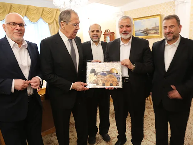 Лавров з одним із лідерів ХАМАС Ісмаїлом Ханією та головою політбюро Мусою Абу Марзуком у Москві / фото росЗМІ