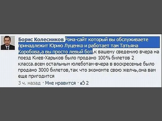 Так, у відповідь на слова користувачів соціальної мережі Колесніков обізвав їх "лошками" та "ботами"