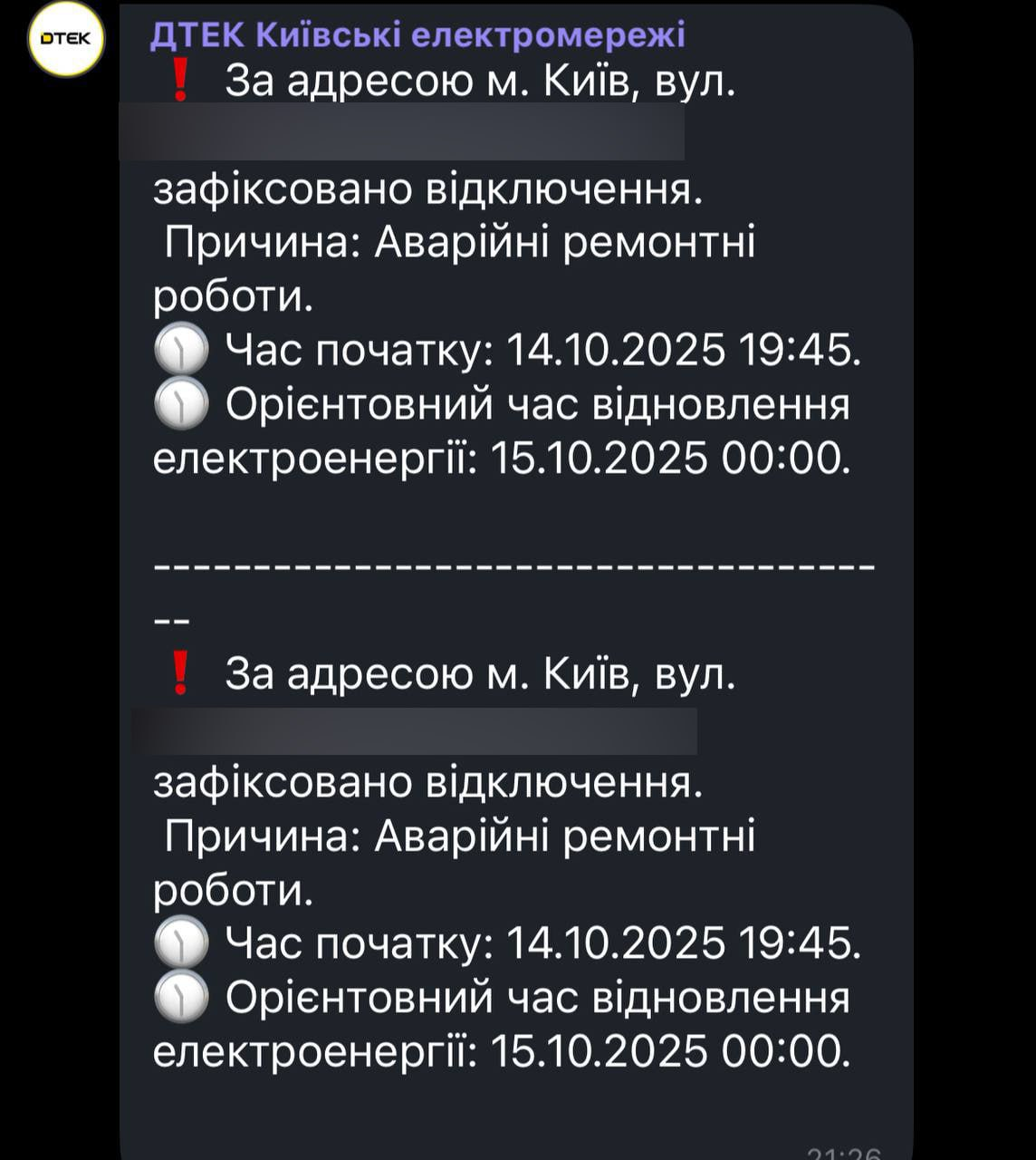 У Києві ввечері 14 жовтня раптово зникло світло. У ДТЕК надсилали жителям столиці повідомлення. Там вже встановили причини знеструмлення.