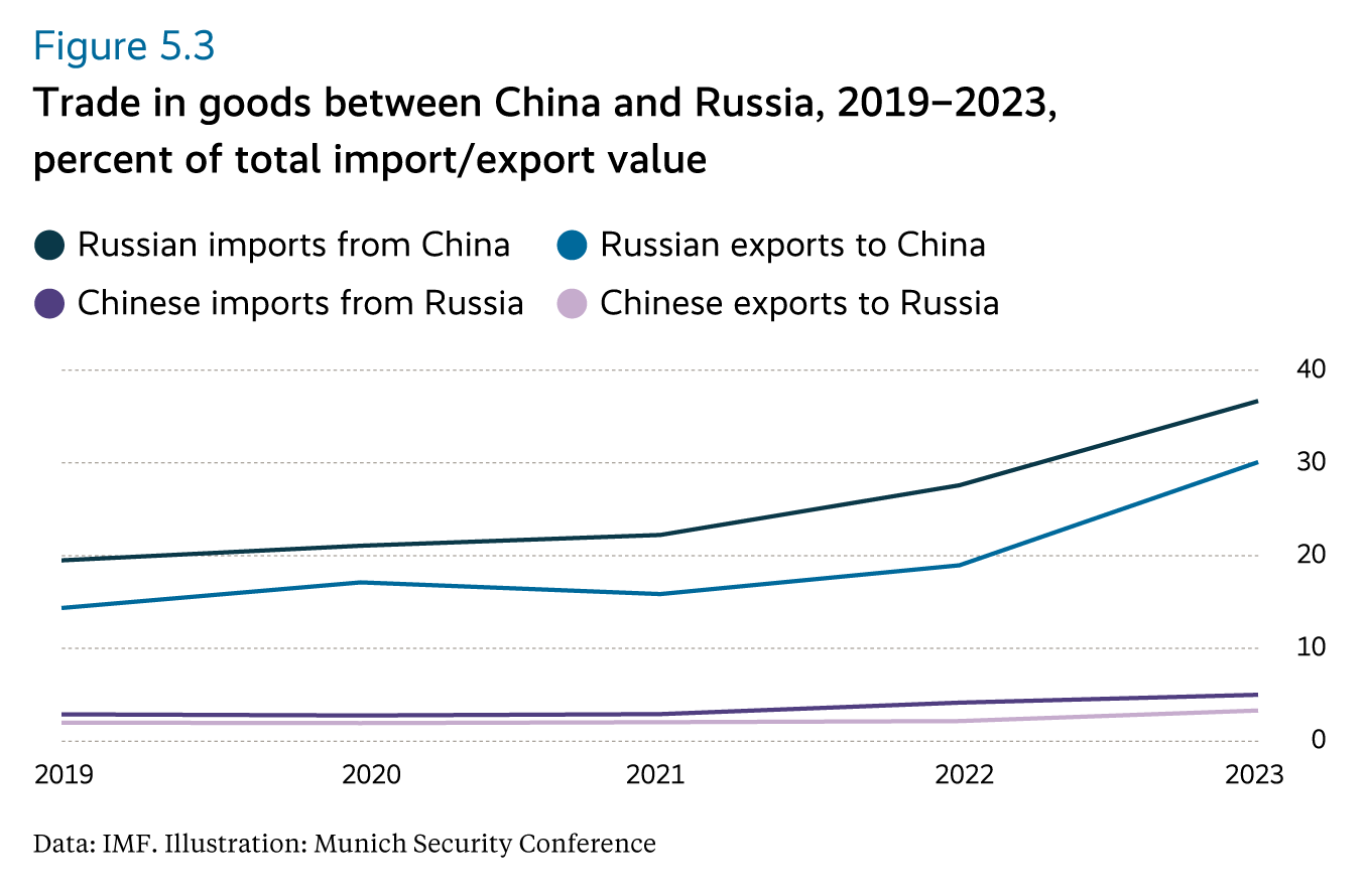 Хоча зростання торгівлі з Китаєм частково компенсує економічні виклики Росії, це також відбувається ціною залежності. Китайсько-російська торгівля не лише набагато важливіша для Росії, ніж для Китаю, але й ця диспропорція значно зросла.