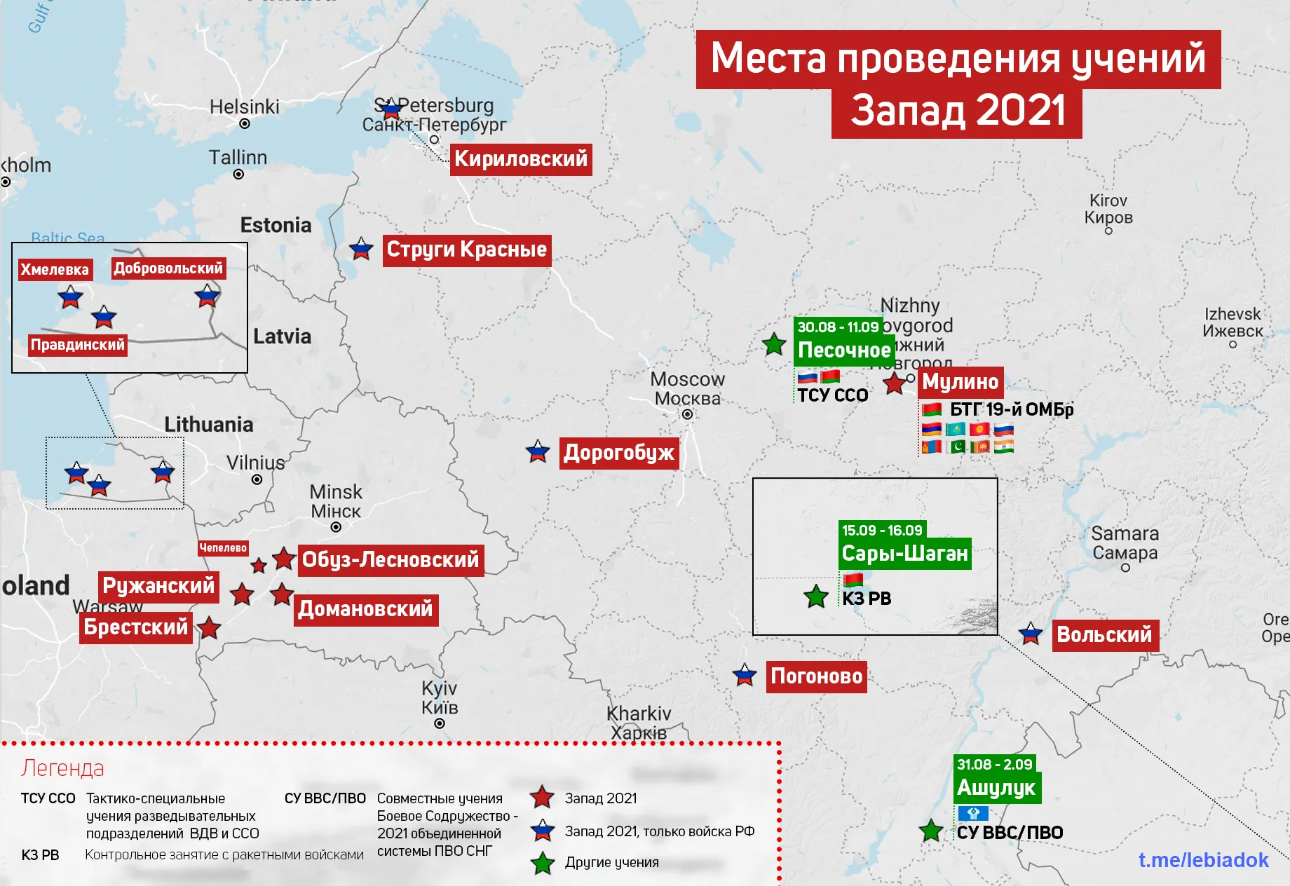 Місця проведення навчань "Захід-2021" / Telegram-канал Lebiadok