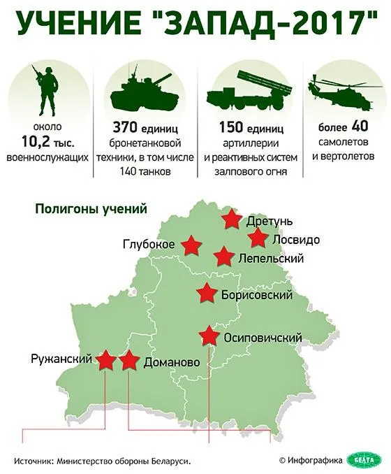 Інфографіка полігонів навчань "Захід-2021" / Фото БЕЛТА