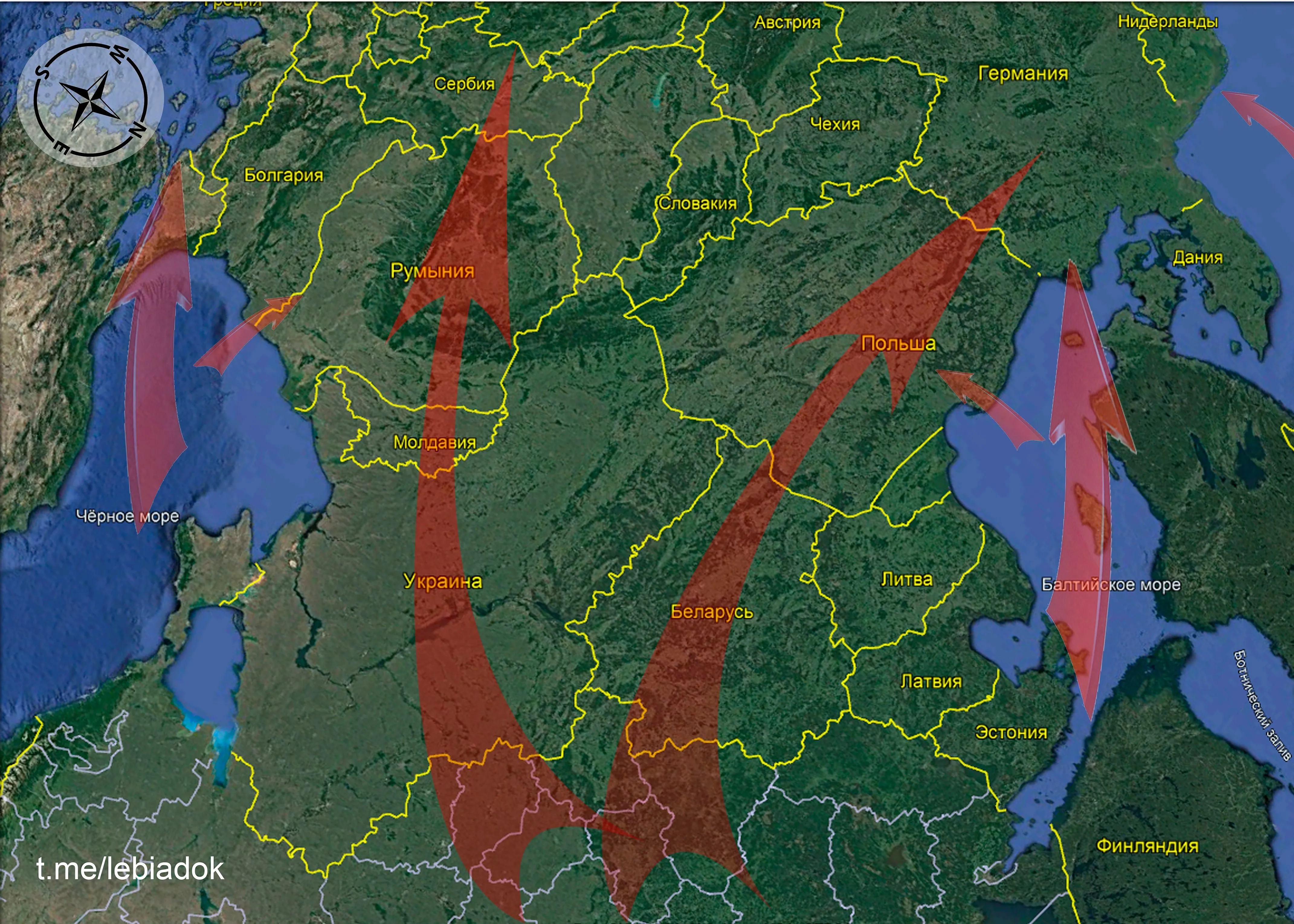 Напрями можливих ударів з боку Росії / Фото Telegram-канал Lebiadok