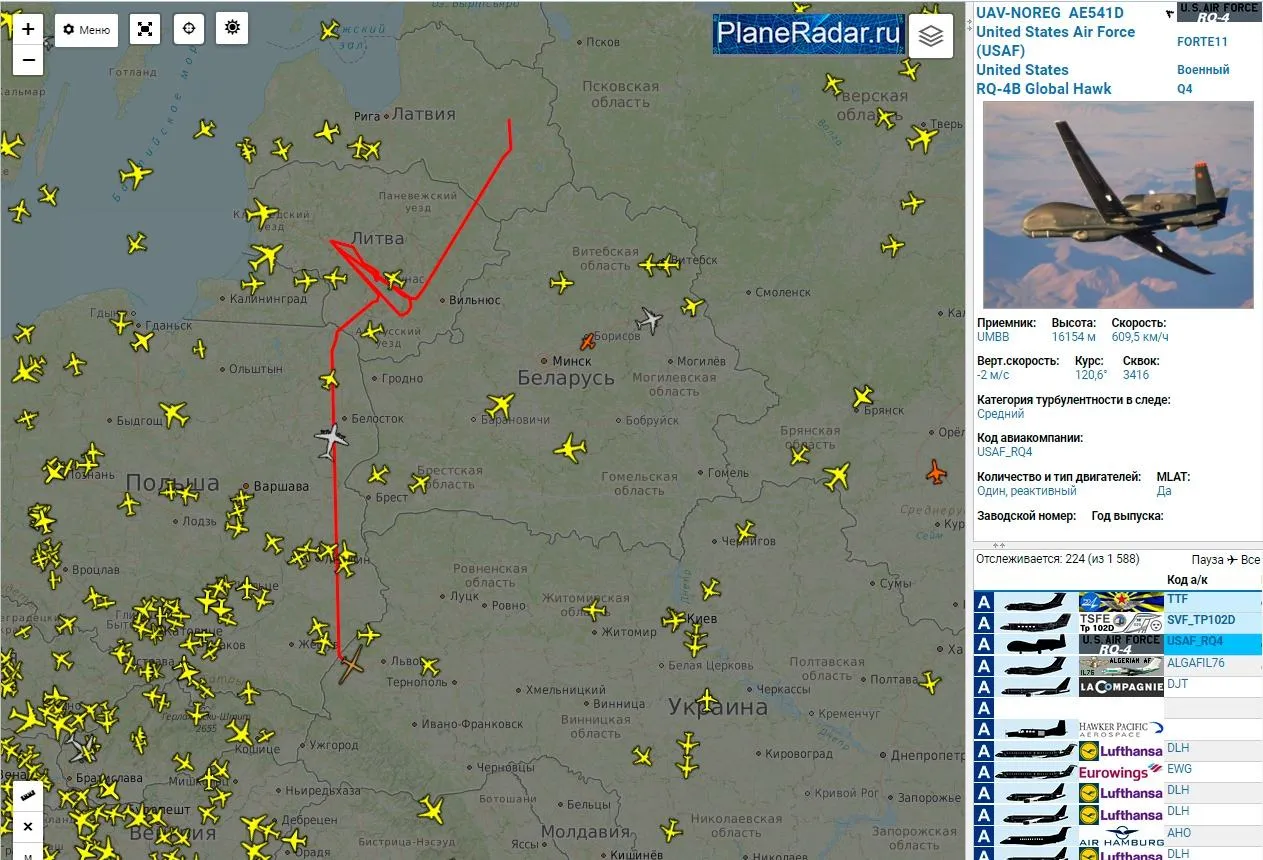В останні місяці біля західних кордонів Білорусі авіазасоби НАТО ведуть активну розвідку, що кратно перевищує рівень 2017 року. Біля кордонів Білорусі та Калінінградської області періодично ведуть розвідку S100D Argus, S102B Korpen (ВПС Швеції), RC-12X Guardrail, E-8C JSTARS, RC-135U Combat Sent, RC-135W Rivet Joint, Bombardier Challenger 650 ARTEMIS, БПЛА RQ-4 Global Hawk (США), RC-135W Rivet Joint (Великобританія), M28 Bryza-1R (Польща).