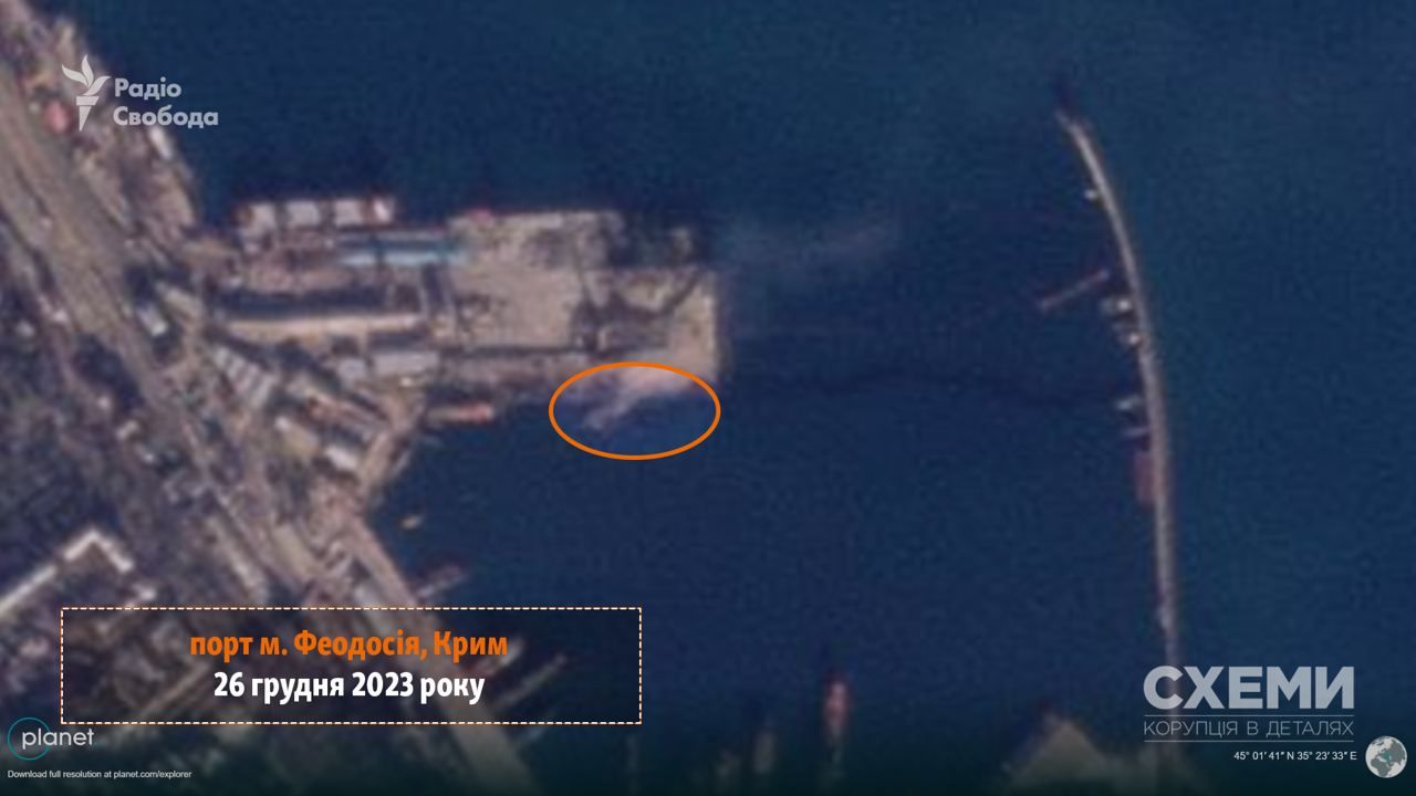 Ураження судна підтверджують кадри, які зафіксував супутник сервісу Planet Labs.