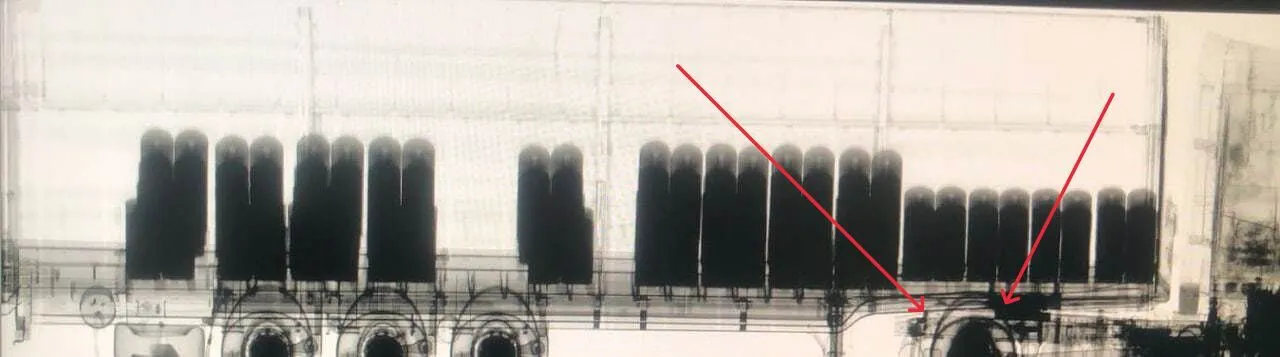 Рентгенівський знімок вантажівки, яка буцімто була наповнена вибухівкою / Фото NEXTA