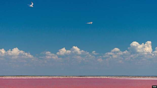 Дивіться фото рожевого озера Сасик-Сиваш (Фото TASS):