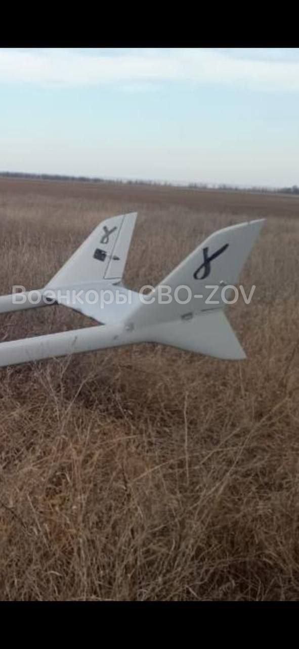 Також ворожі телеграм-канали публікують фото БПЛА Mugin-5 Pro, який нібито посадили засоби радіоелектронної боротьби в Сакському районі Криму.