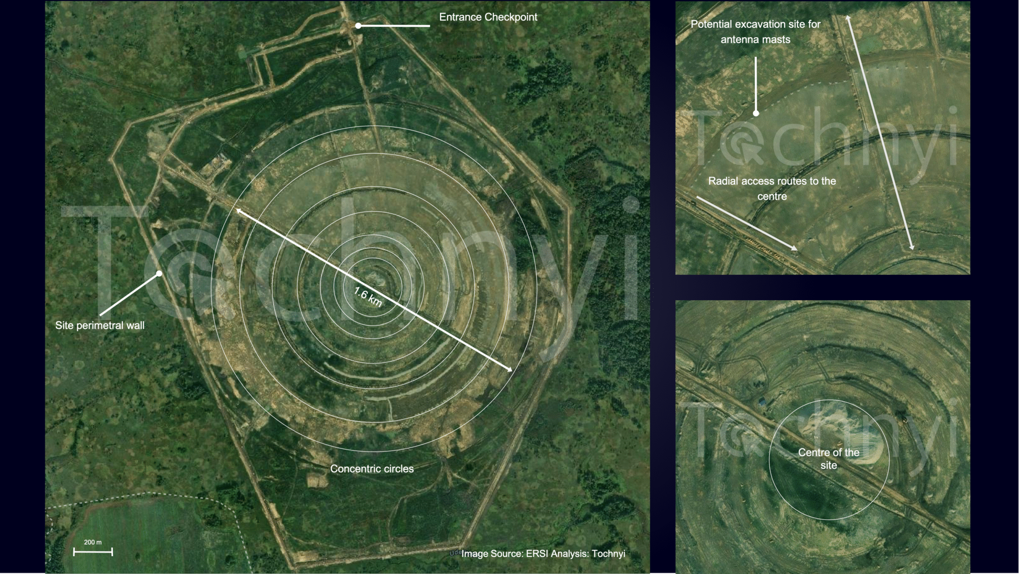Найбільше коло об'єкта має діаметр 1,6 кілометра, а дальність роботи антени може сягати 7 400 кілометрів.