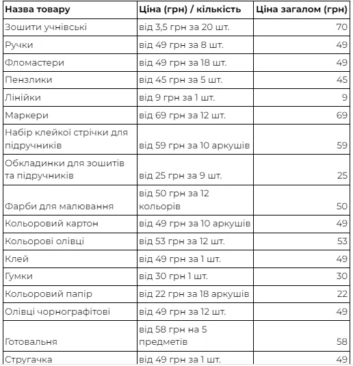 Повний цінник шкільних товарів на сайті онлайн-ритейлера станом на серпень 2022 року: