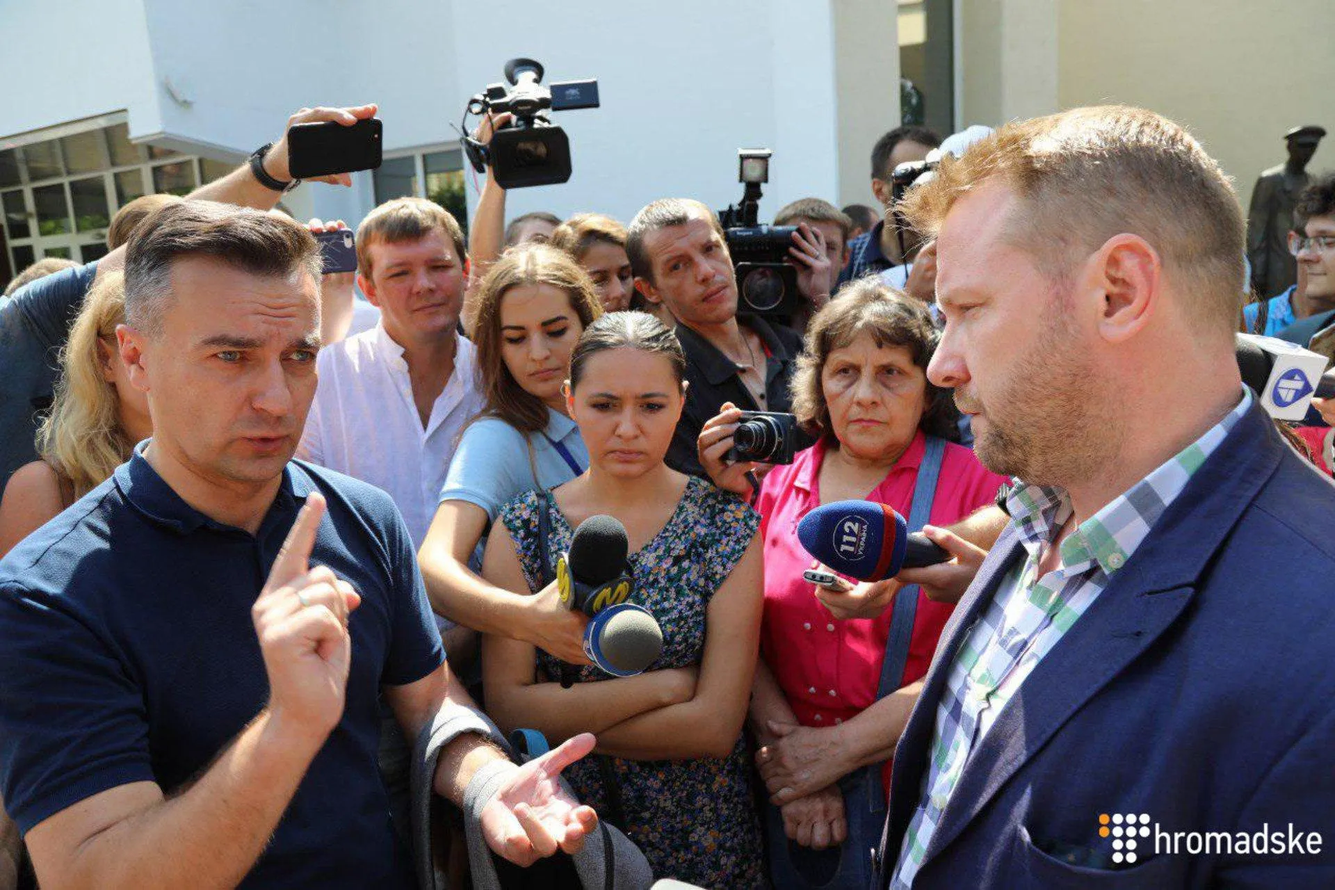 До учасників акції вийшов речник МВС Артем Шевченко. Він зазначив, що на всі питання стосовно нападу на активістку Катерину Гандзюк правоохоронці будуть відповідати сьогодні на брифінгу в Херсоні. За його словами, в МВС зберуть інформацію про всіх злочини в регіонах.