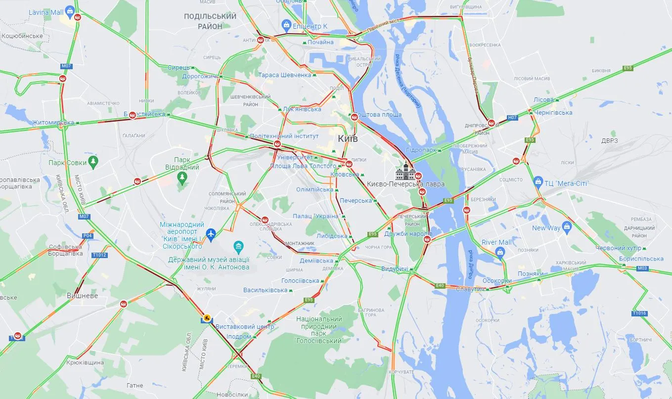 Де у Києві складно проїхати 3 листопада / Скриншот з Google maps