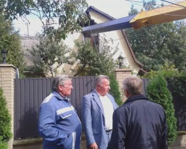 "Автокран перекрив всю дорогу, стріла його впала на сусідній будинок, в результаті чого будинок пробито, дах пробито, другий поверх повністю пробито", – інформує видання.