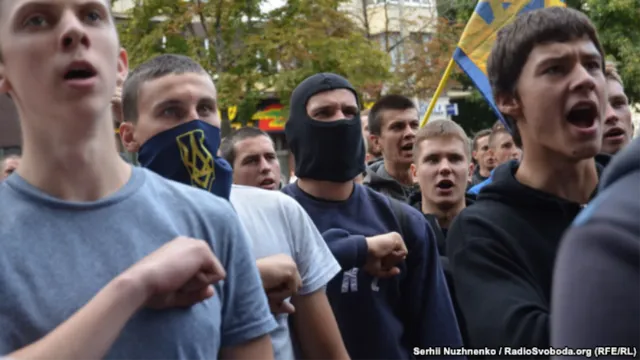 Активісти "Азову" знову підпалили біля будівлі декілька фаєрів і прочитали молитву. За попередніми даними, заворушень чи збитків від акції не було.