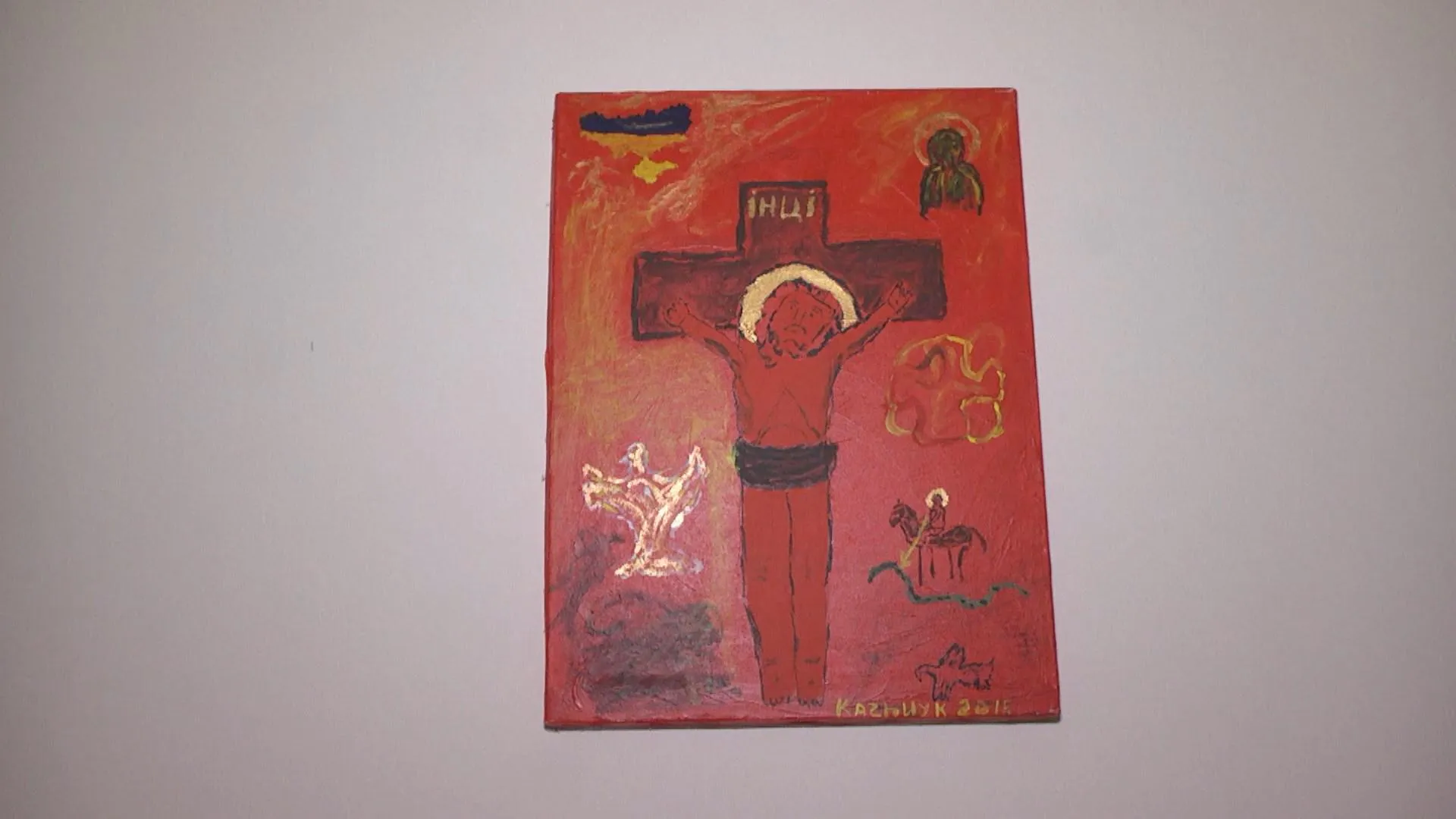 Ще є розп'яття. Це вже наша згадка про Страсбург. Ми відвідували благодійний ярмарок, і там продавались роботи зроблені українськими військовими, які проходили курс реабілітації від посттравматичного синдрому. Один із бійців, який воював на Сході, захищаючи Україну, почав писати ікони. Я її побачив, і одразу відчув, що це щось дуже щире та справжнє, і купив її за символічні гроші. А гроші пішли на підтримку програми для реабілітації українських військових.