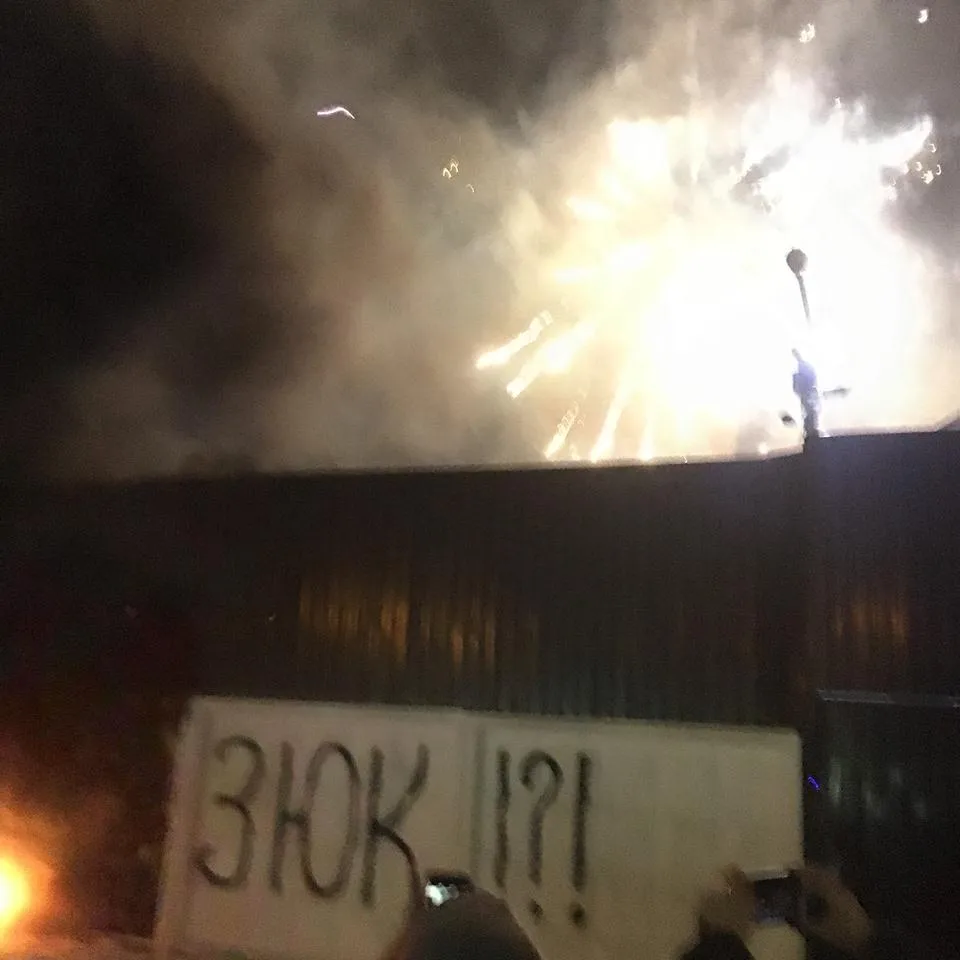 Згодом, активісти почали пускати салюти. Наразі біля будинку немає правоохоронців.
