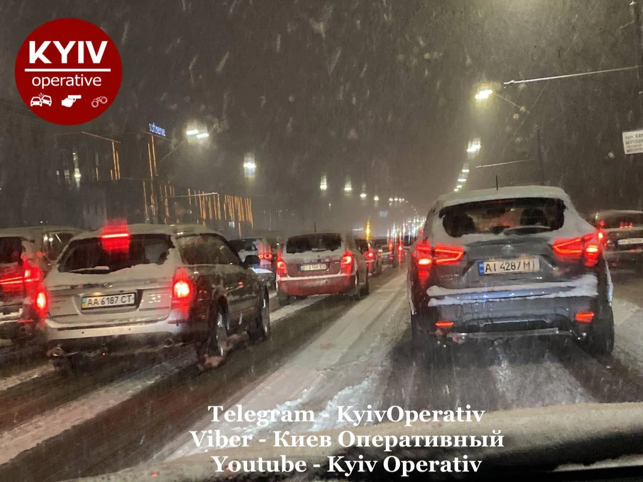 Проїзд дорогами Києва дуже ускладнив снігопад / Фото "Києва оперативного"