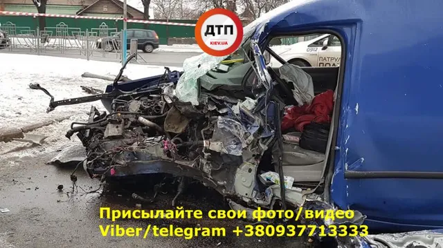 Аварія сталася на перетині проспекту Лобановського та вулиці Головка водій Volkswagen, який їхав на великій швидкості, не впорався з управлінням і врізався у стовп.