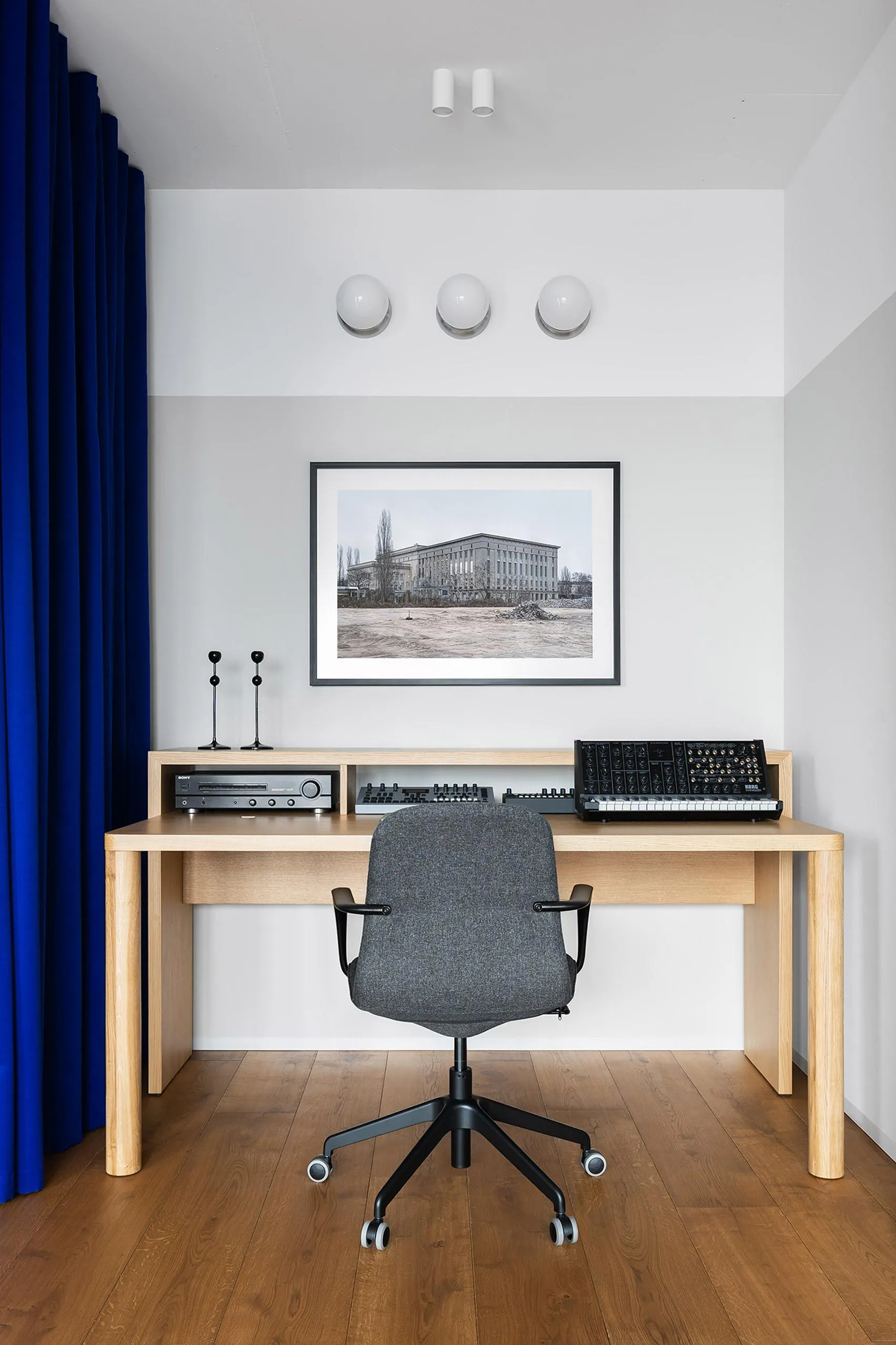 Конкретним запитом власника квартири було облаштування робочого місця, де він зможе займатися улюбленою справою – створенням електронної музики,