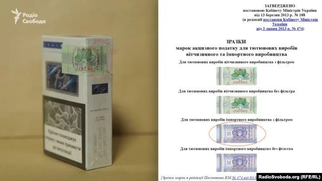 Тоді журналісти зробили контрольну закупівлю цигарок і віддали на експертизу, аби перевірити, чи справжні акцизні марки наклеєні на пачки .Результат експертизи приголомшив. Із 11 акцизних марок справжньою виявилася лише одна.