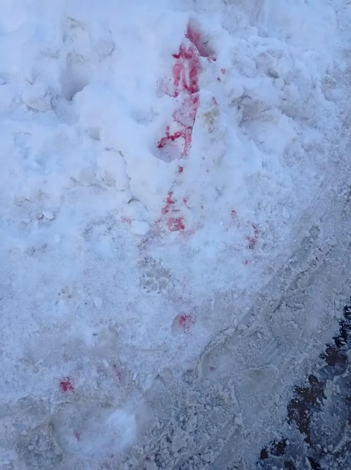 Сніг у місці, де злочинці розсипали отруту, змінює колір на рожевий / Фото 24 каналу