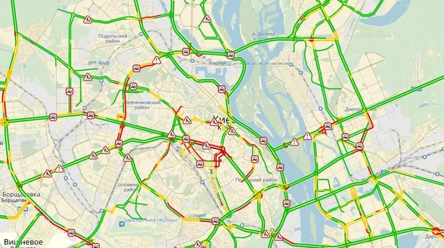 Таку інформацію оприлюдний онлайн-сервіс "Яндекс. Пробки".