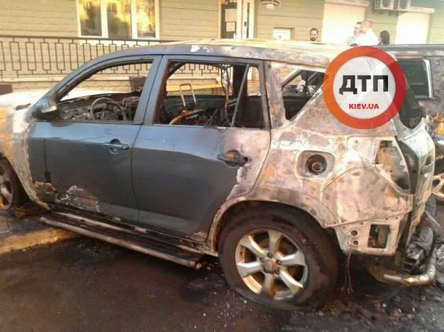 Внаслідок займання Toyota Rav 4 згорів повністю, в іншому автомобілі пошкоджено моторний відсік, капот, фари, гумові покришки та лакофарбове покриття.