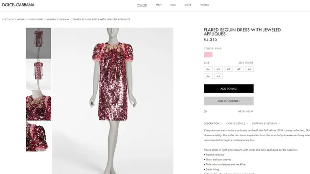 На офіційному сайті Dolce&Gabbana така ж сукня коштує 4315 євро, або ж – понад 125 тисяч гривень.
