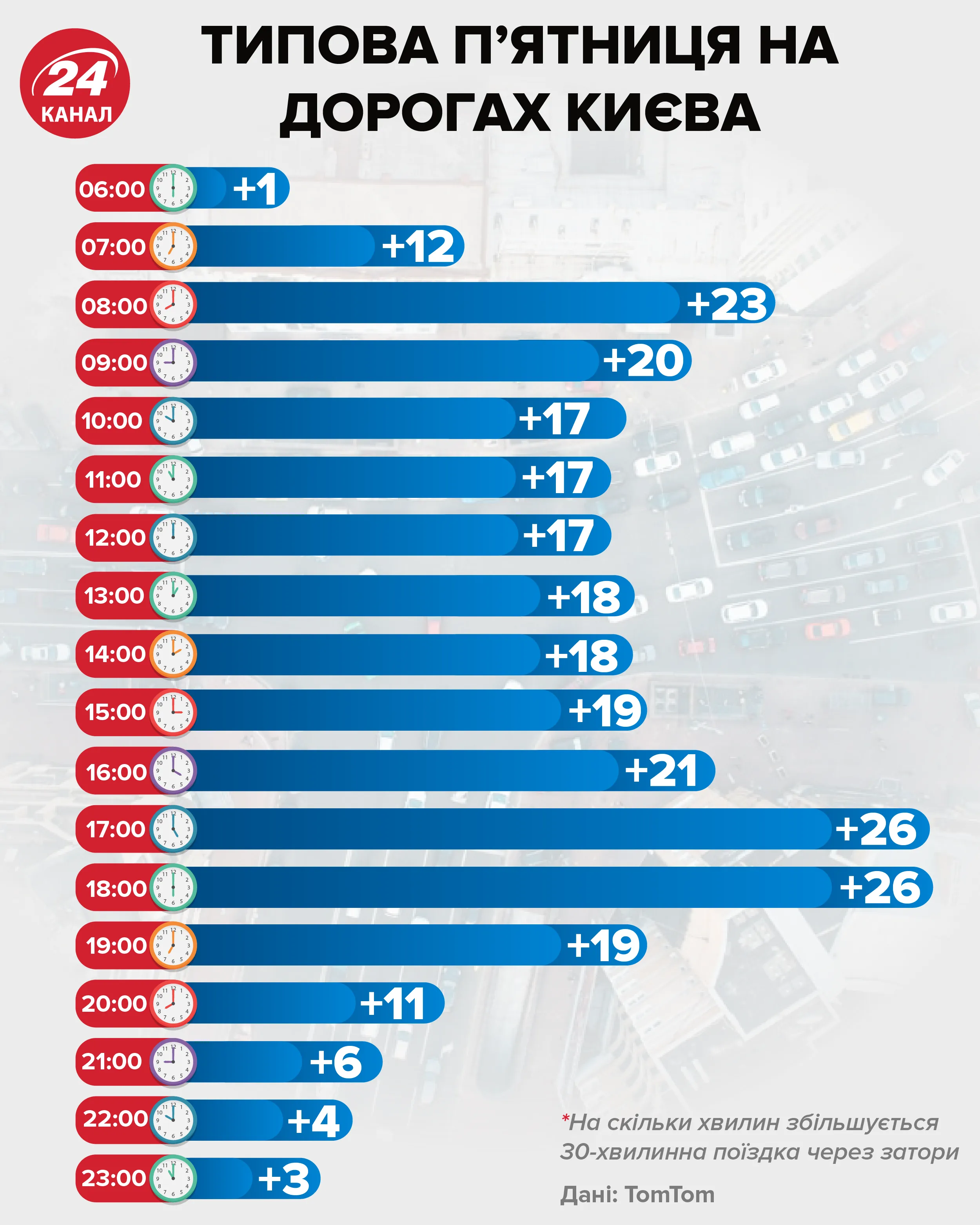 Традиційно – кожної осені. І не тільки осені. Київ увійшов у топ міст світу з найбільшими заторами. У час пік зранку і ввечері до кожної пів години у дорозі додається 30 хвилин через очікування в тягучках. Аби всюди встигнути і не просити вибачення за запізнення, треба підраховувати час.