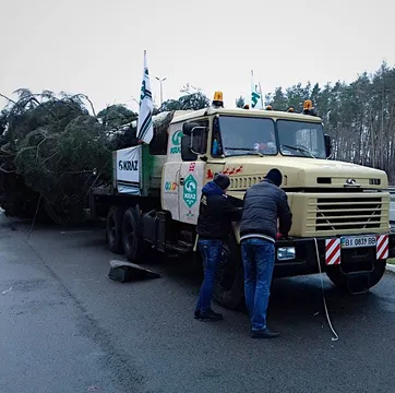 Вантажний автомобіль з головною ялинкою країни затримується на в'їзді до Києва