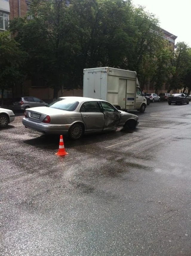 В результаті аварії обидва автомобілі отримали серйозні пошкодження, а у Jaguar відлетіло переднє колесо.