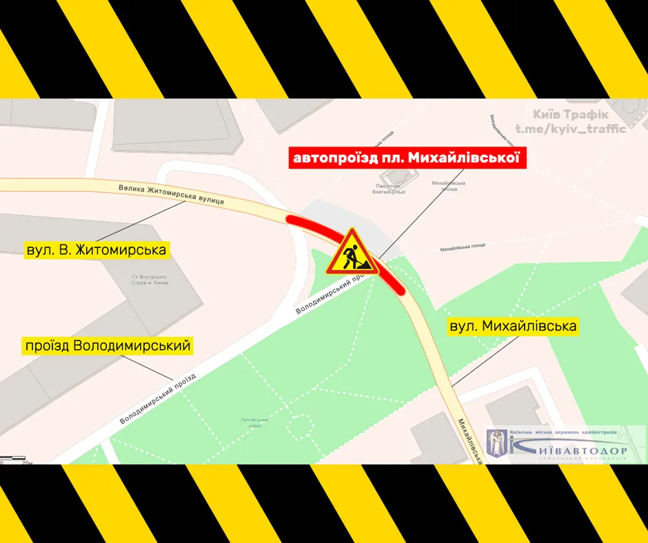 Через ремонт дорожнього покриття поблизу з Михайлівською площею утворилися неабиякі затори. Водіям доводиться об'їжджати місце, де працюють комунальники, через що навантаження на інші дороги значно збільшилося.