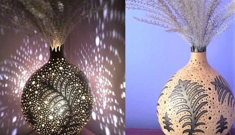 Тепер жінка виготовляє люстри, настільні лампи, вази з таких гарбузиків.