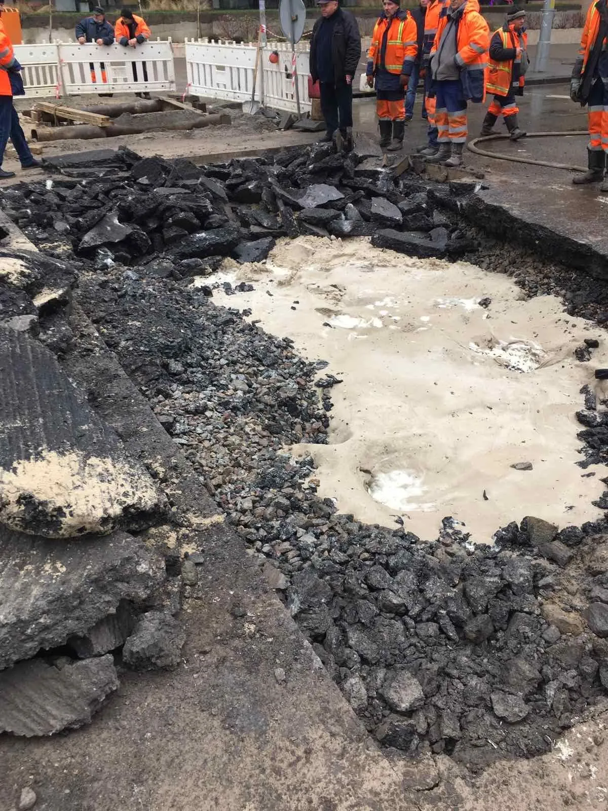 На місце екстрено виїхали комунальники, вони ліквідовують наслідки аварії. На ділянці дороги, де сформувалося провалля, перекрили рух для проведення ремонтних робіт.