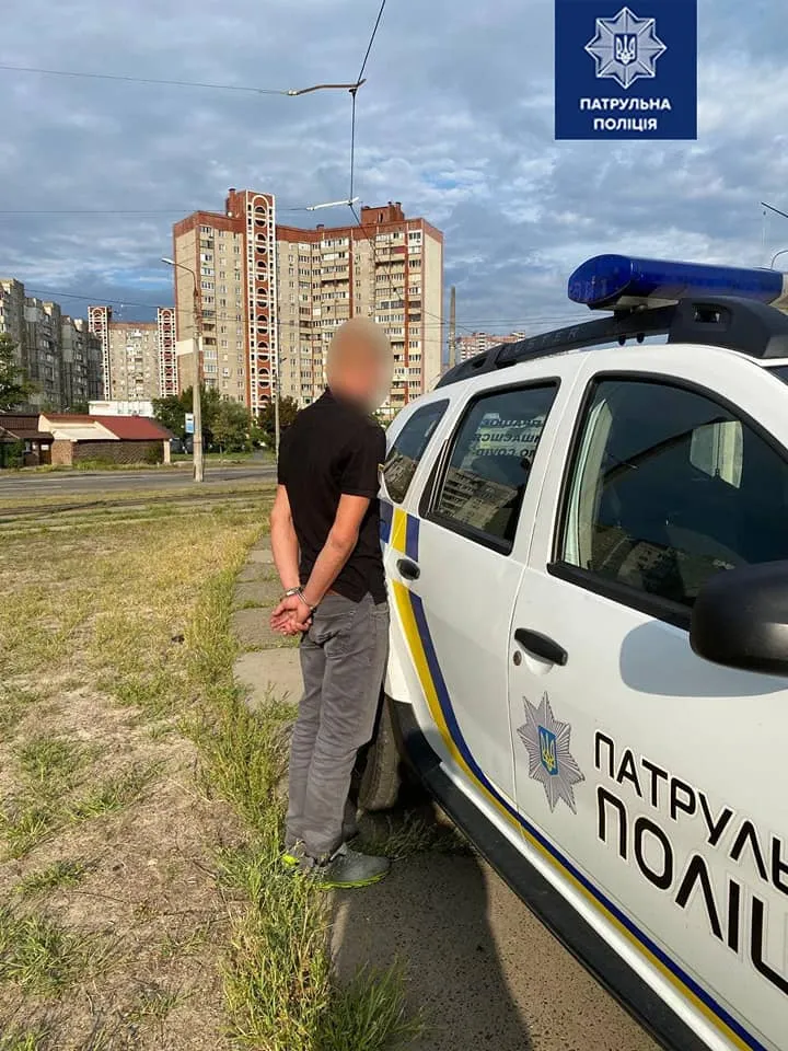 Патрульні, яких викликала водійка трамваю, досить швидко знайшли зловмисника. Коли той побачив правоохоронців, намагався втекти. Однак йому це не вдалося. На місці події працювала слідчо-оперативна група Деснянського райуправління поліції.