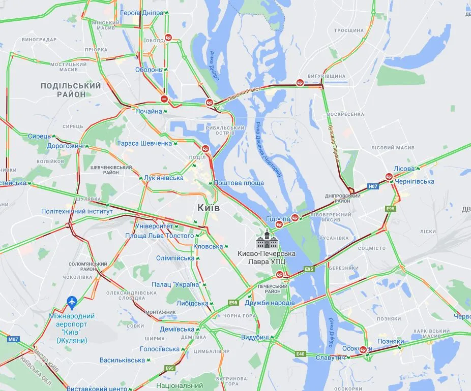 Ситуація на дорогах Києва вранці 1 червня / Карта Google